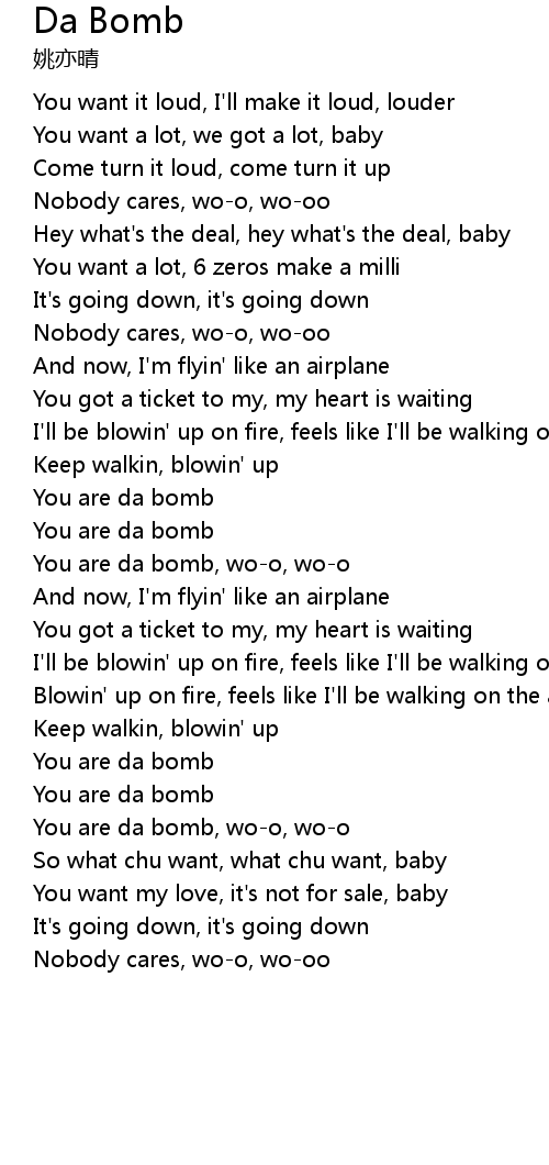 | You are da bomb, wo-o, wo-o | |