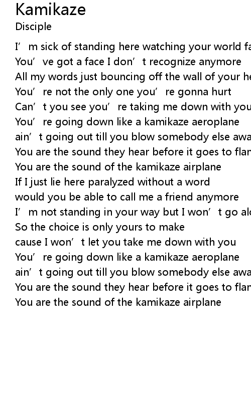 | You are the sound of the kamikaze airplane |