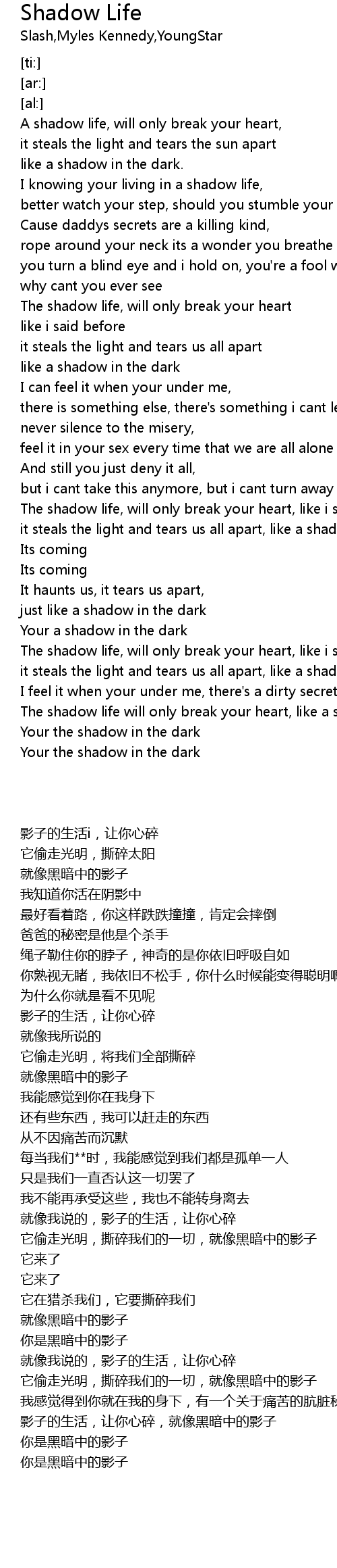 The shadow life will only break your heart, like a shadow in the dark |