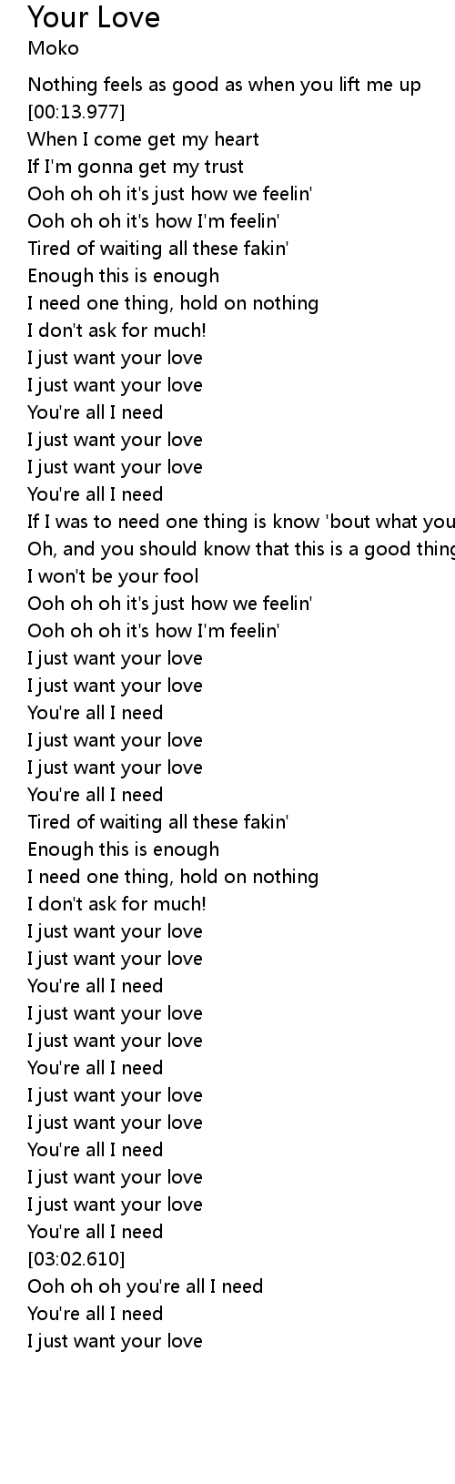 | [01:10.968] | If I was to need one thing is know 'bout what you do |