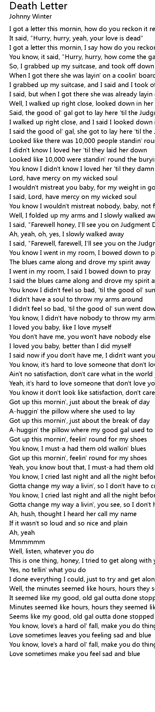 You know, it said, "Hurry, hurry, how come the gal you love is dead?" |