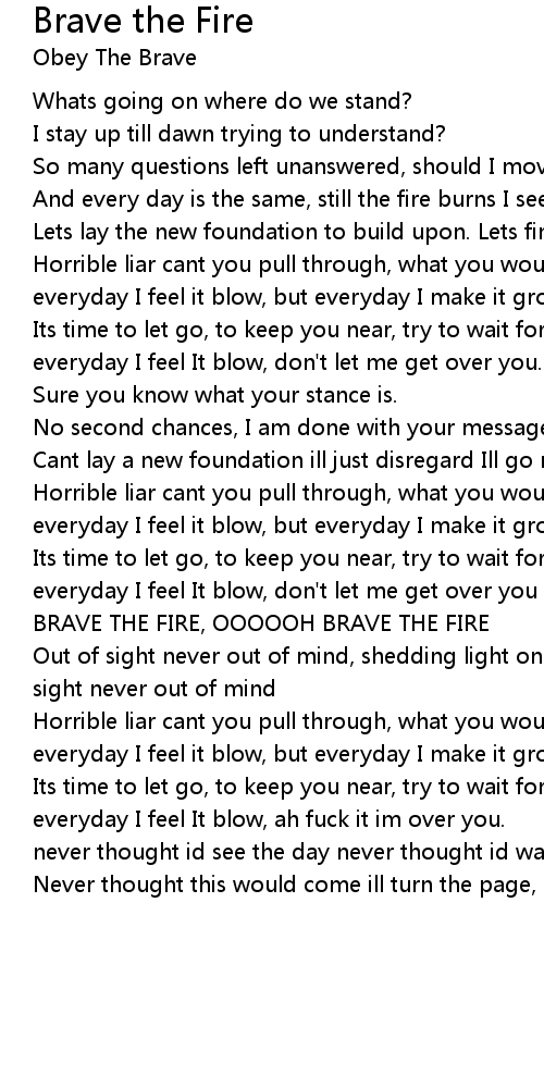 BRAVE THE FIRE, OOOOOH BRAVE THE FIRE |
