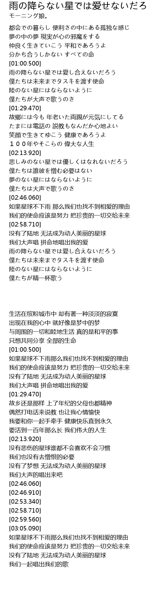 | [03:13.000] | 雨の降らない星では愛し合えないだろう |