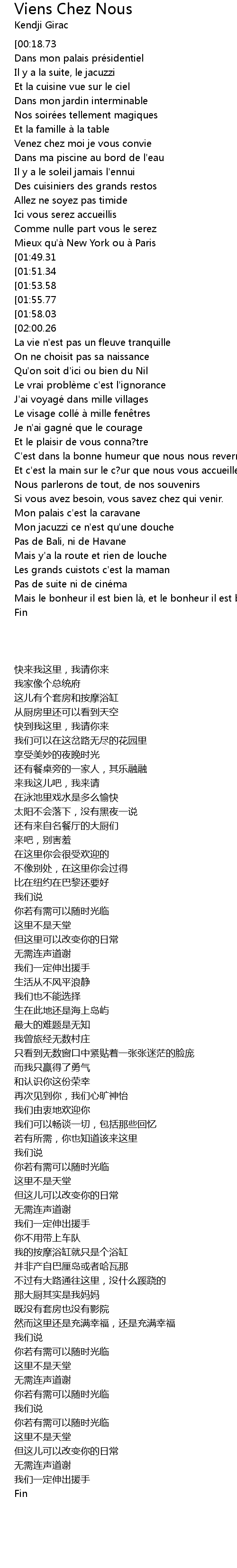 | [00:09.48][00:18.73] | Venez chez moi je vous invite |