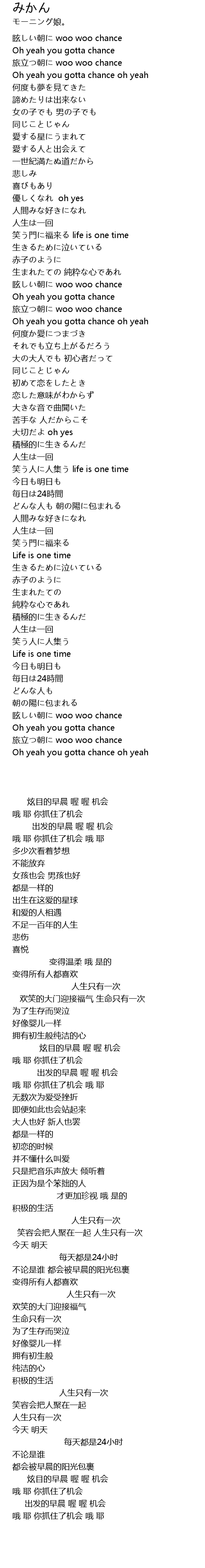 | [00:06.66] | 眩しい朝に woo woo chance |