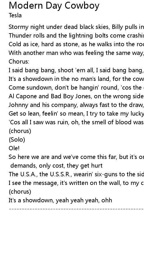 Come sundown, don't be hangin' round, 'cos the cowboy'll blow you away |