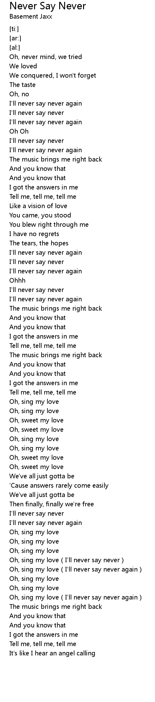 | [03:12.64] | Oh, sing my love I' ll never say never |