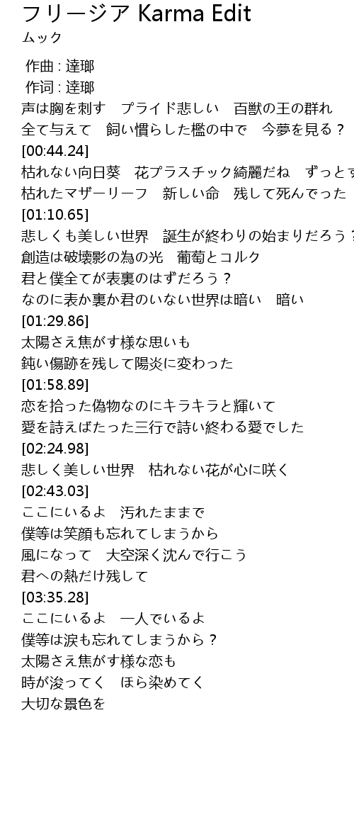 | [00:59.83] | 枯れたマザーリーフ 新しい命 残して死んでった |