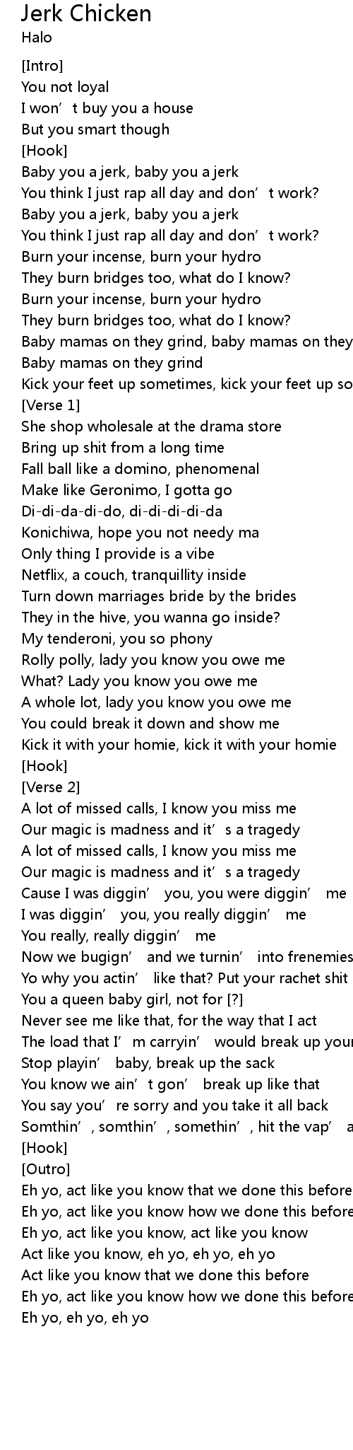| Song | Jerk Chicken |