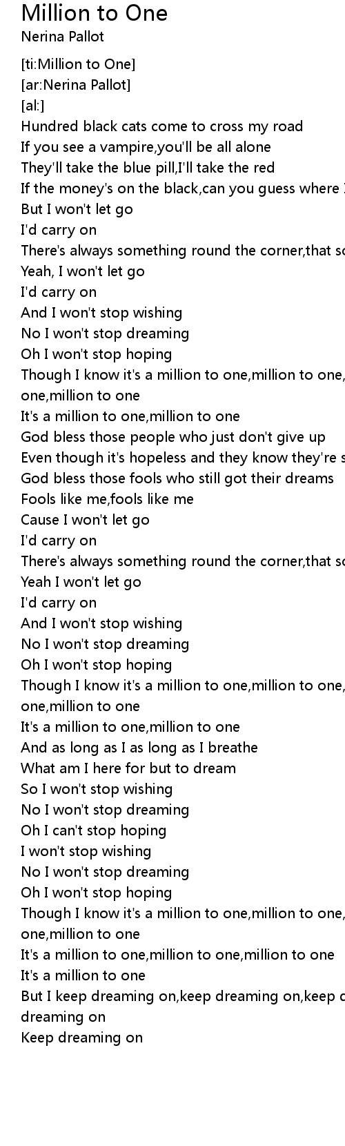 But I keep dreaming on,keep dreaming on,keep dreaming on, keep dreaming on |
