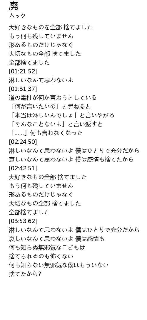 | [01:53.65] | 道の電柱が何か言おうとしている |