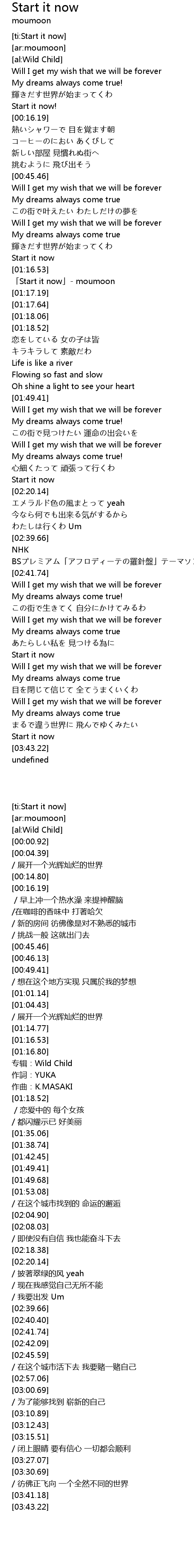 | [01:16.80] | 「Start it now」- moumoon |