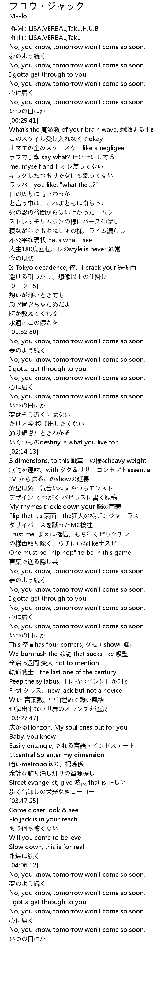 | [00:00.000] | 作词 : LISA,VERBAL,Taku,H.U.B |