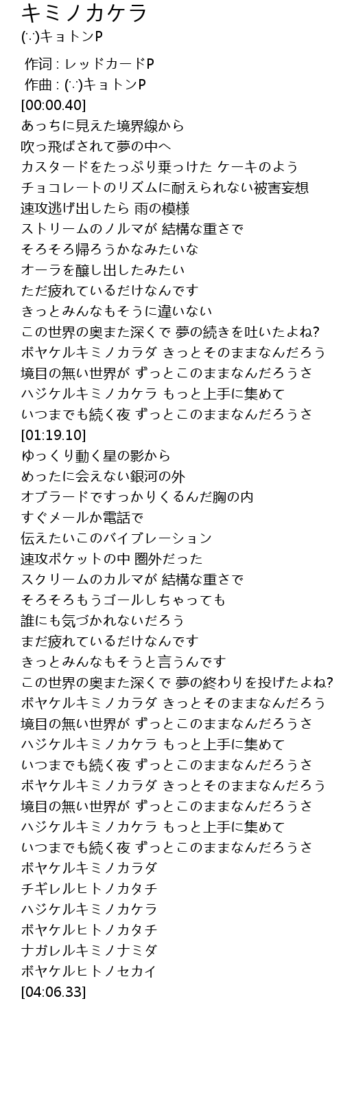 | [04:01.17] | ボヤケルヒトノセカイ |