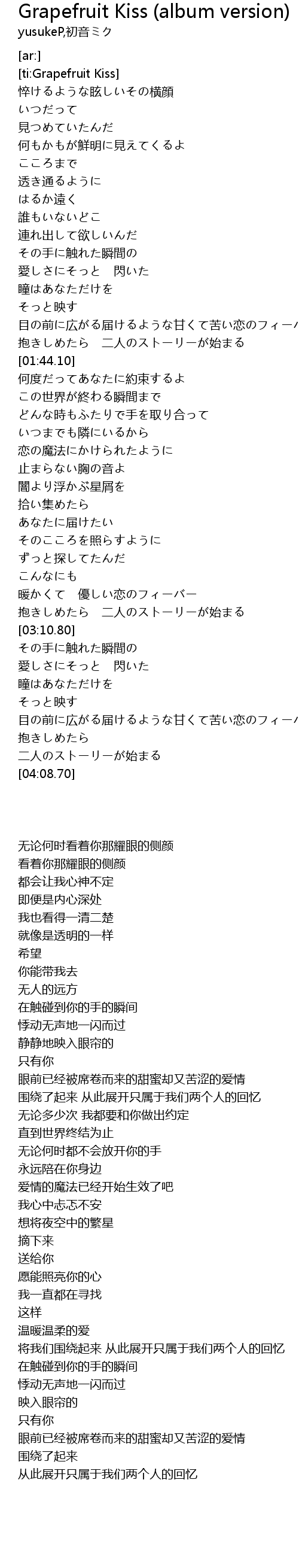 | [01:36.37] | 抱きしめたら 二人のストーリーが始まる |