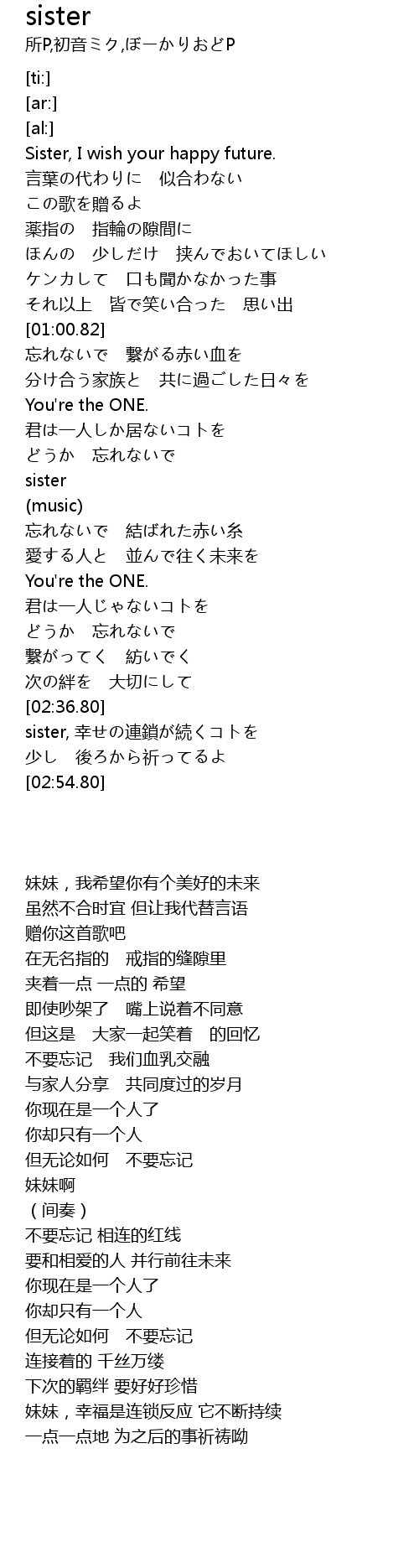 | [02:39.36] | sister, 幸せの連鎖が続くコトを |