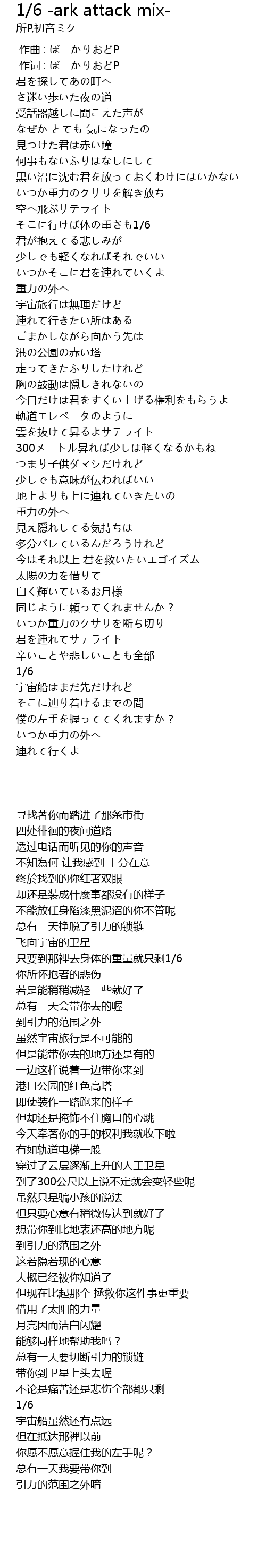 | [01:33.21] | 重力の外へ |