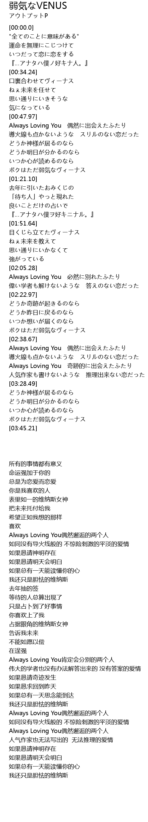 | [03:41.39] | ボクはただ弱気なヴィーナス |