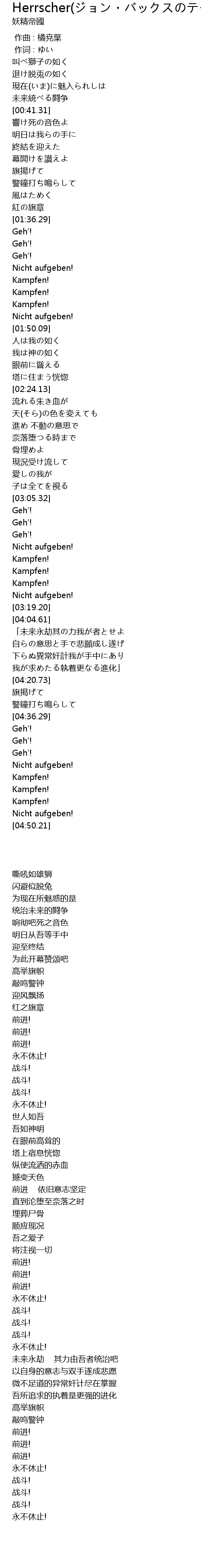 | [04:16.94] | 我が求めたる執着更なる進化」 |