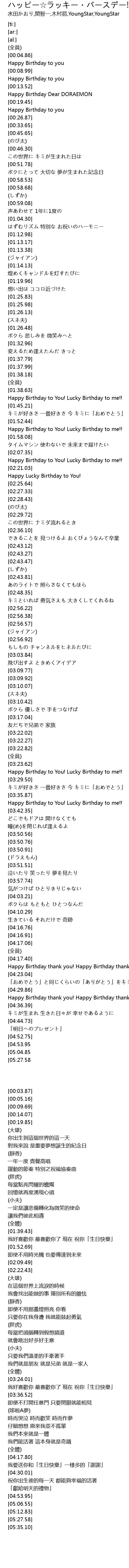 | [00:14.07] | Happy Birthday Dear DORAEMON |