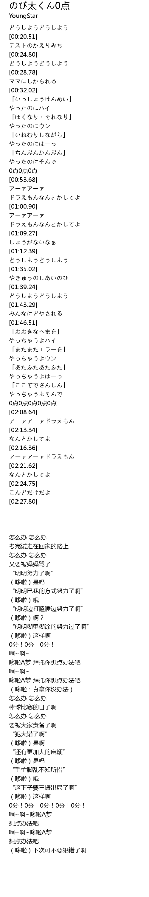 | [02:18.14] | アーァアーァドラえもん |