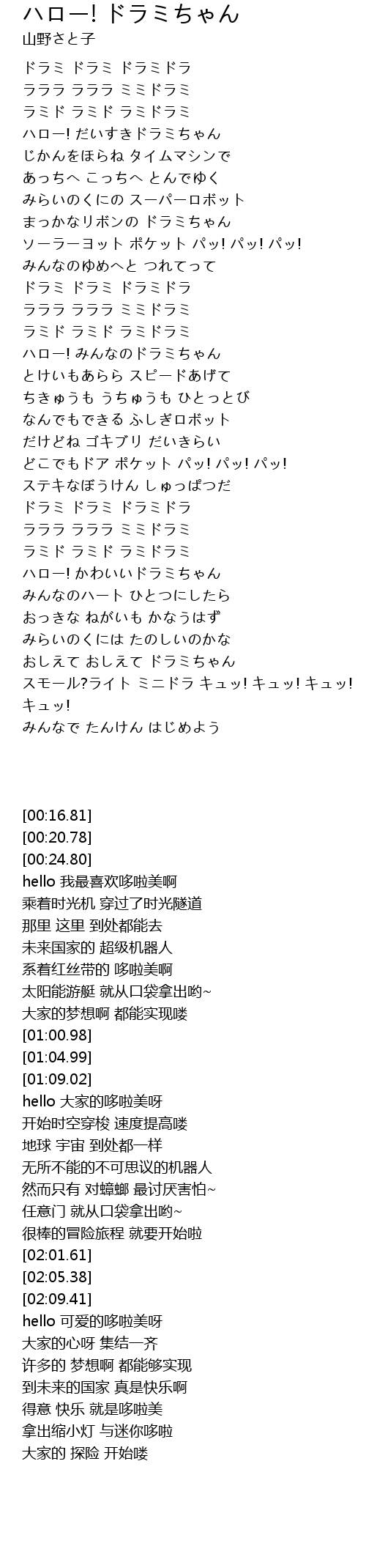 | [00:28.82] | ハロー! だいすきドラミちゃん |