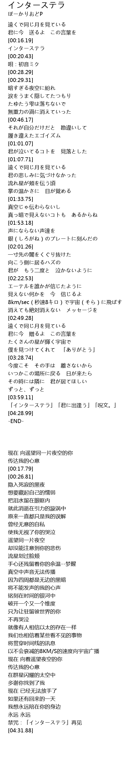 | [04:18.17] | 「インターステラ」「君に出逢う」「呪文。」 |