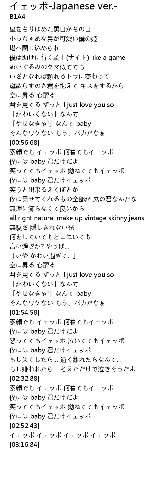 | [02:42.72] | 笑っててもイェッポ 拗ねててもイェッポ |