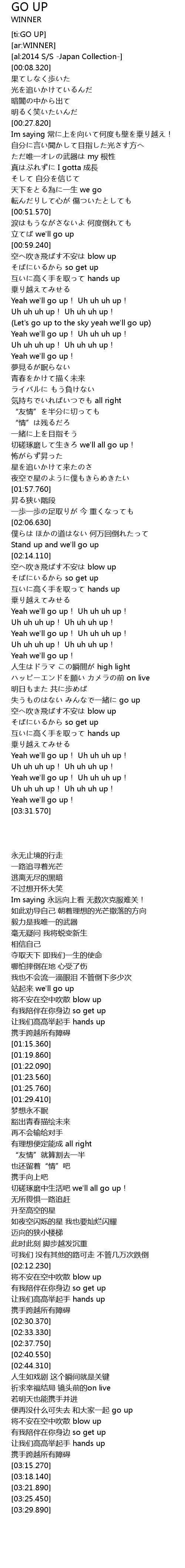 | [02:56.790] | 失うものはない みんなで一緒に go up |