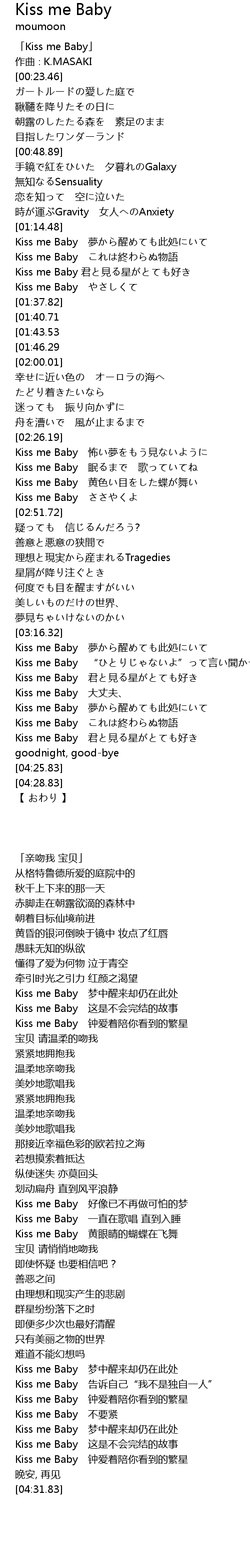 | [02:36.40] | Kiss me Baby 眠るまで 歌っていてね |