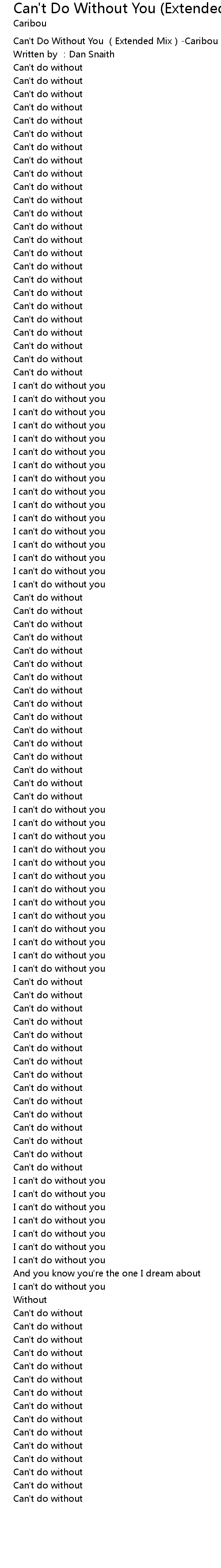 | [00:01.57] | Can't Do Without You (Extended Mix)-Caribou |