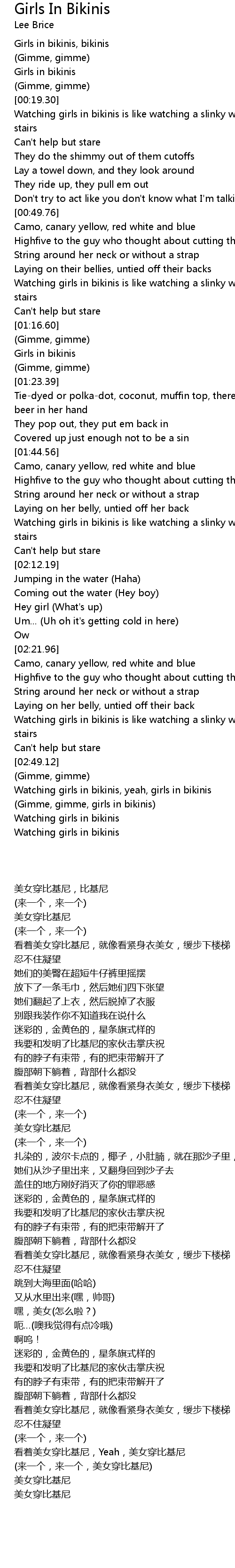 (Gimme, gimme, girls in bikinis) |