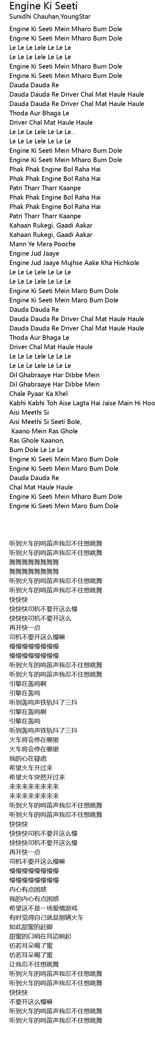 | [02:25.15] | Dauda Dauda Re Driver Chal Mat Haule Haule |