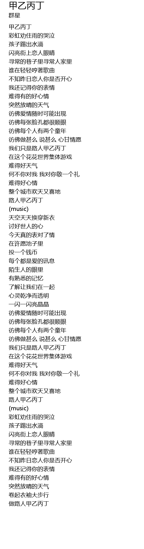 | Song | 甲乙丙丁 |