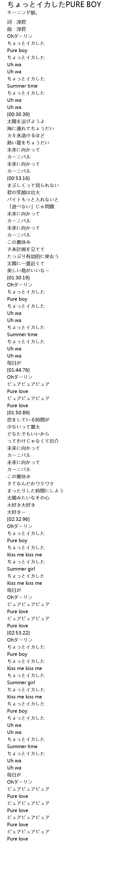 PURE BOY Lyrics