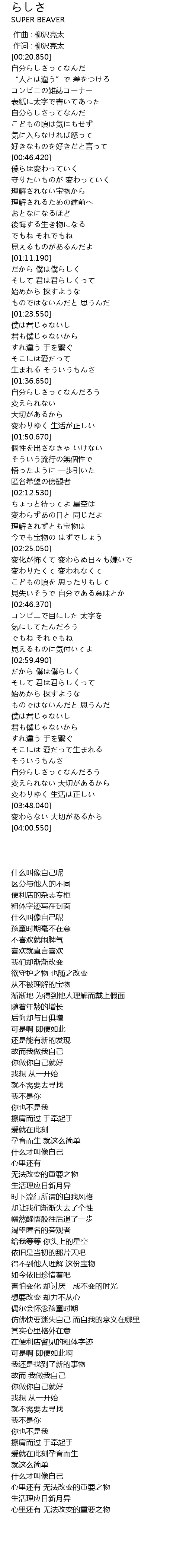 | [00:01.00] | 作词 : 柳沢亮太 |