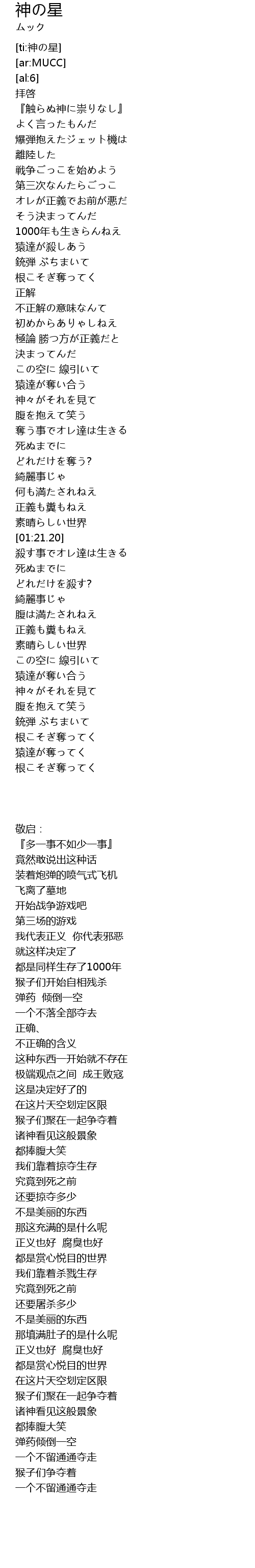 | [01:02.77] | 奪う事でオレ達は生きる |