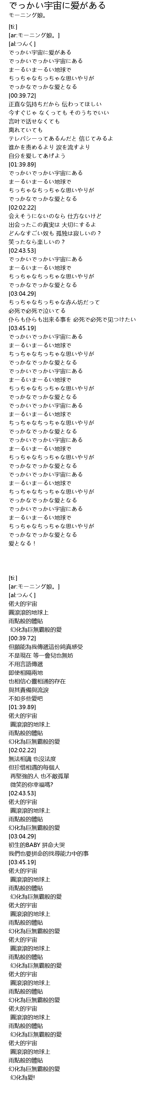 | [03:45.99] | でっかいでっかい宇宙にある |