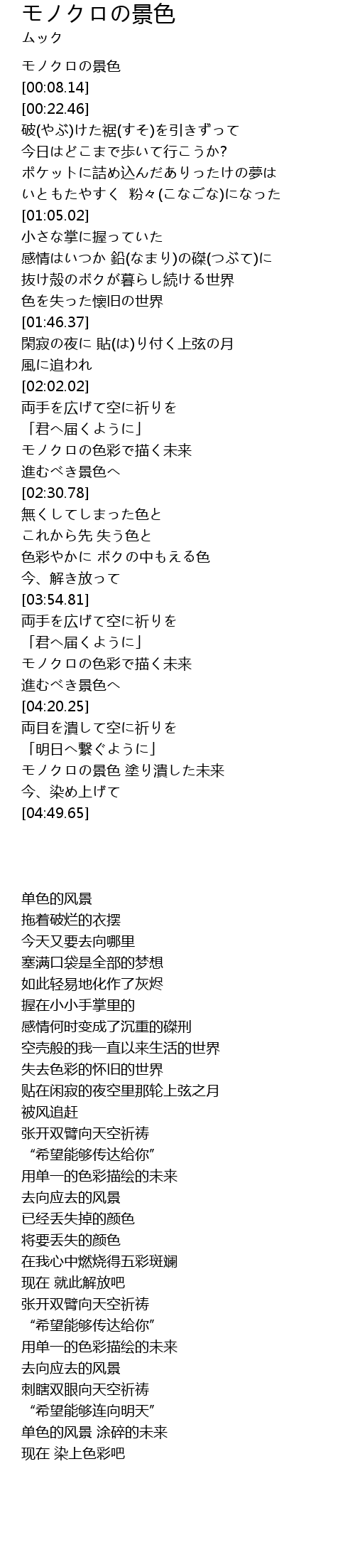 | [04:35.10] | モノクロの景色 塗り潰した未来 |