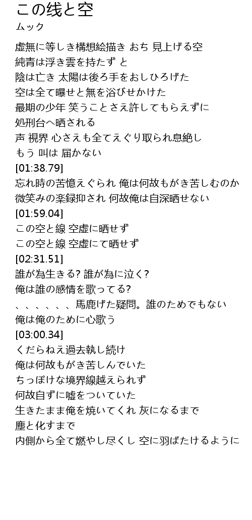 | [02:19.60] | この空と線 空虚にて晒せず |