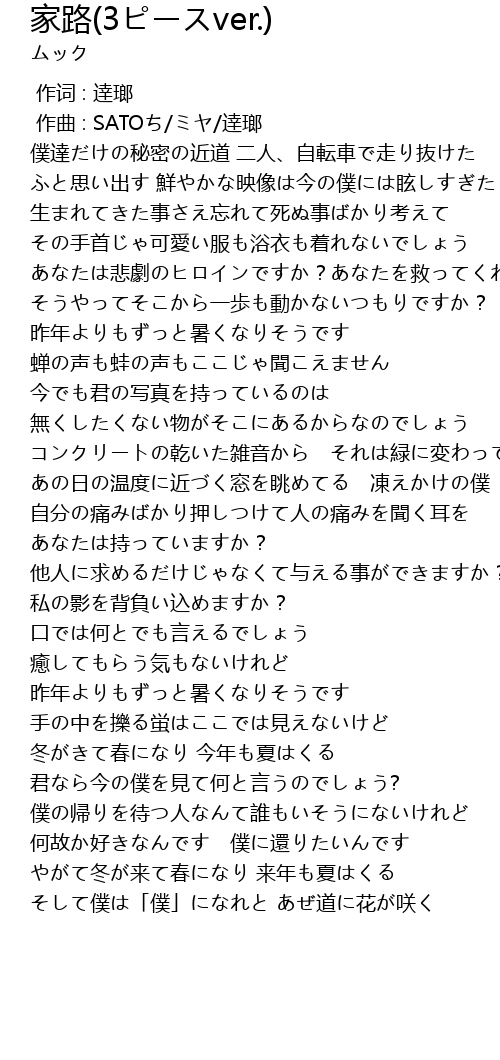 | [00:01.000] | 作曲 : SATOち/ミヤ/逹瑯 |