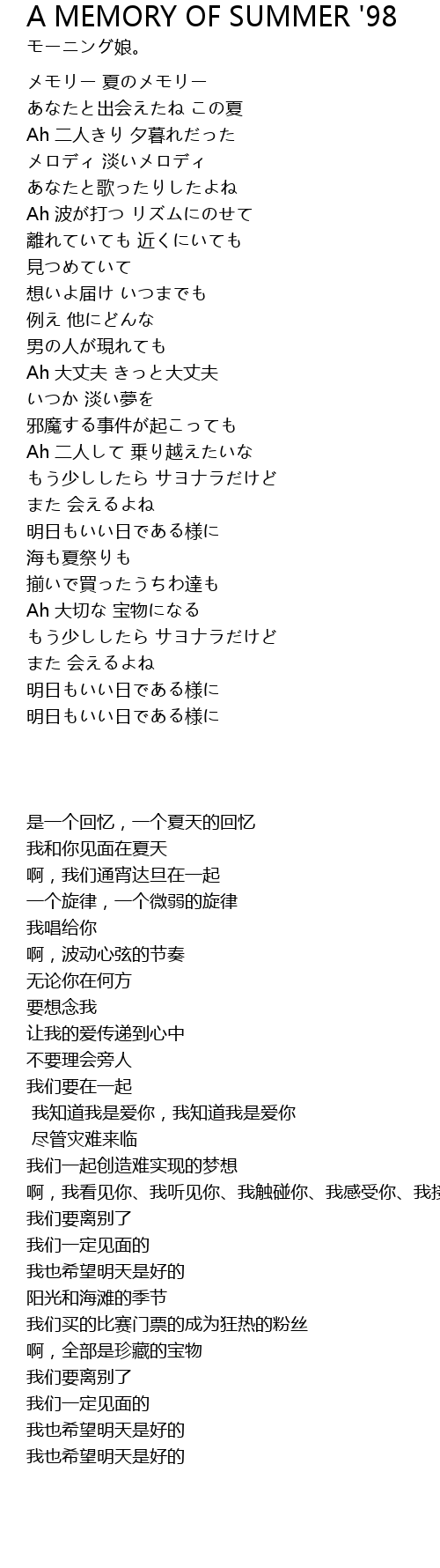 | [00:10.93] | メモリー 夏のメモリー |