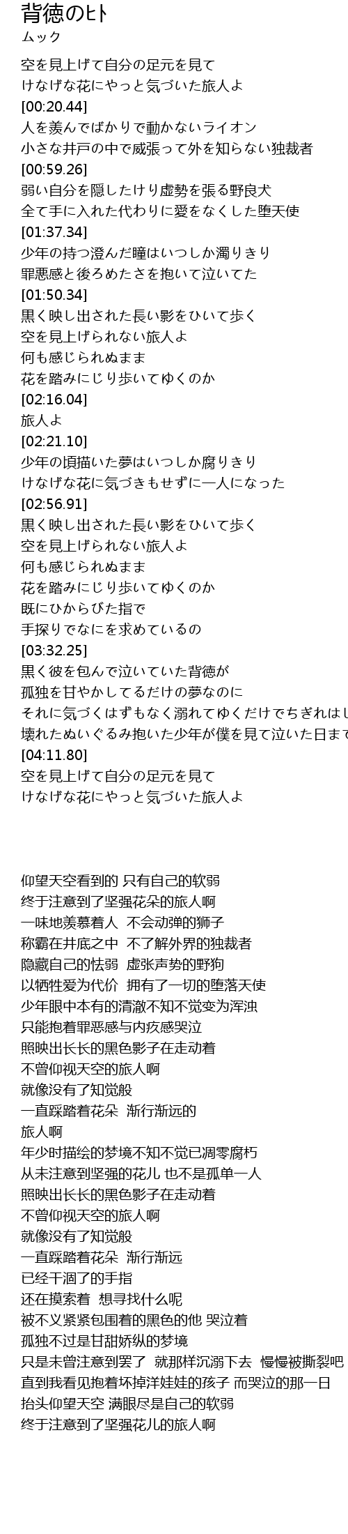 | [04:18.50] | けなげな花にやっと気づいた旅人よ |