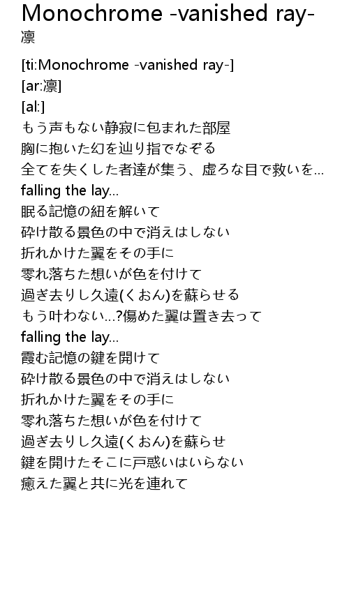 | [01:06.48] | もう声もない静寂に包まれた部屋 |