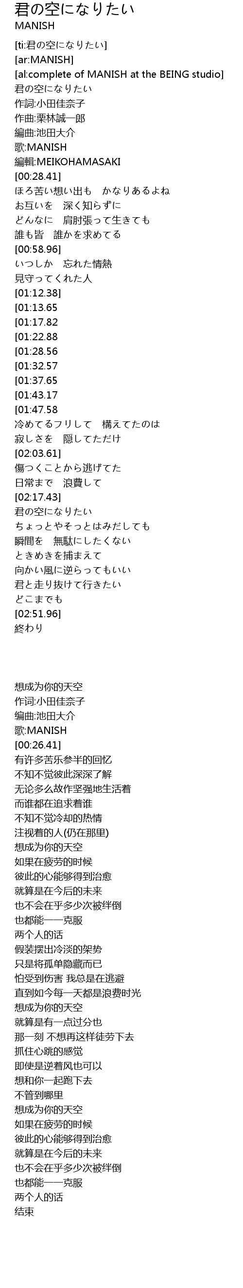 | [03:13.85][01:13.65] | 君の空になりたい |