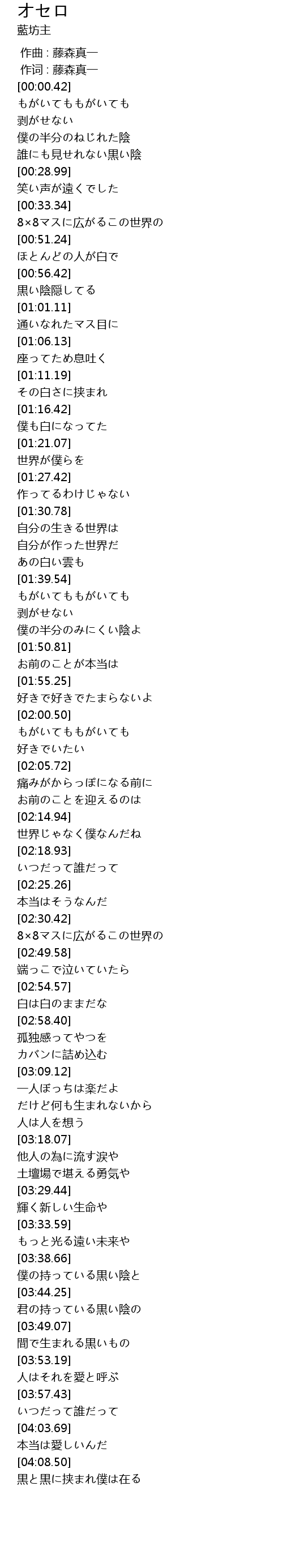| [00:00.00] | 作曲 : 藤森真一 |