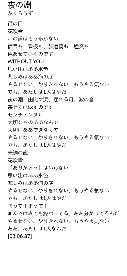 | [01:04.36] | 夜の淵、由比ケ浜、揺れる月、波の音 |