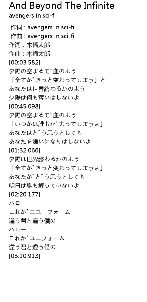 | [00:01.000] | zuò qǔ : avengers in scifi |
