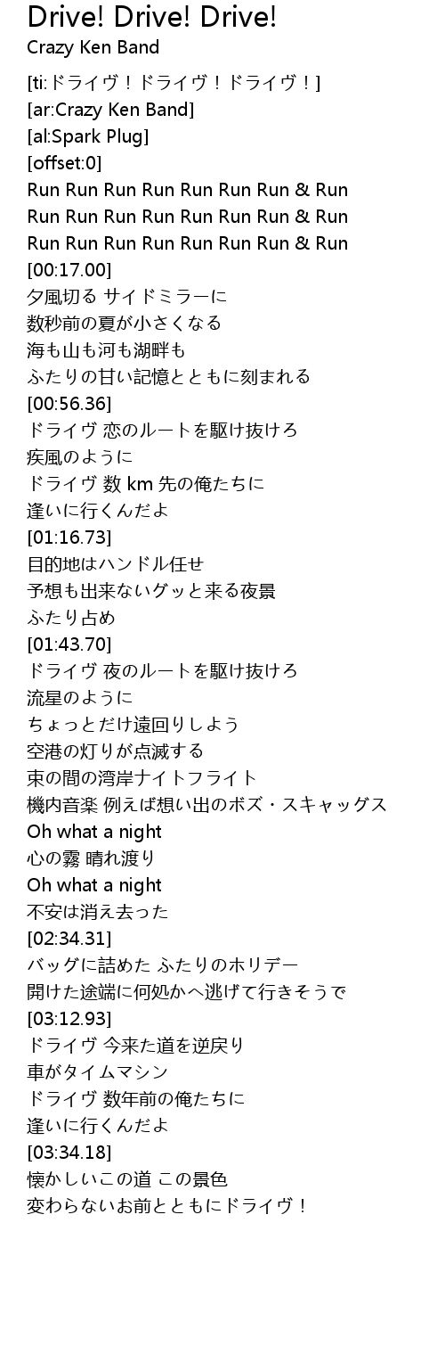| [ti:ドライヴ!ドライヴ!ドライヴ!] | |
