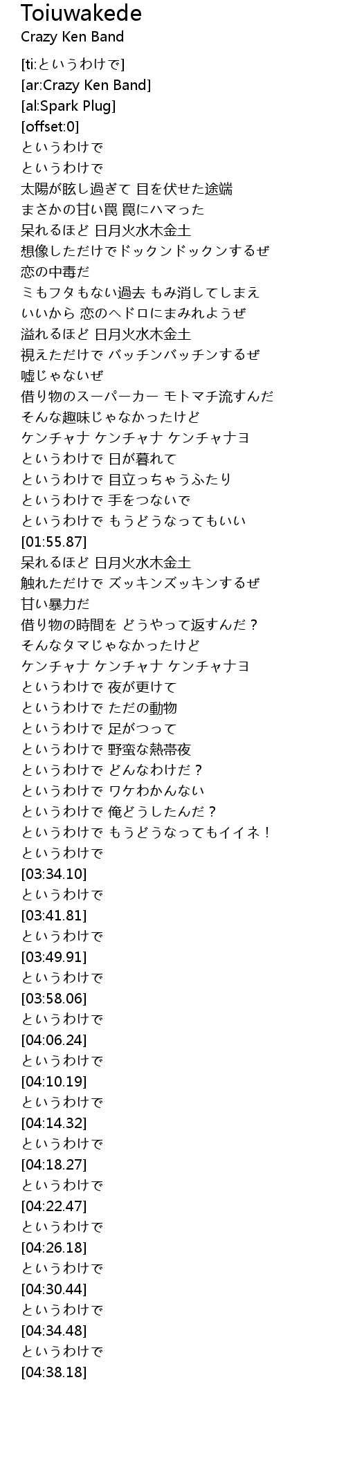 | [00:58.12] | いいから 恋のヘドロにまみれようぜ |